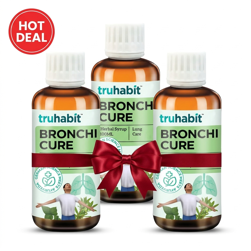 TruHabit Bronchi Cure ek powerful herbal lung care syrup hai jo respiratory health ko naturally support karta hai. Yeh specially selected Ayurvedic herbs se bana hai jo lungs ko detox karne, mucus ko loosen karne aur smooth breathing promote karne me madad karta hai.