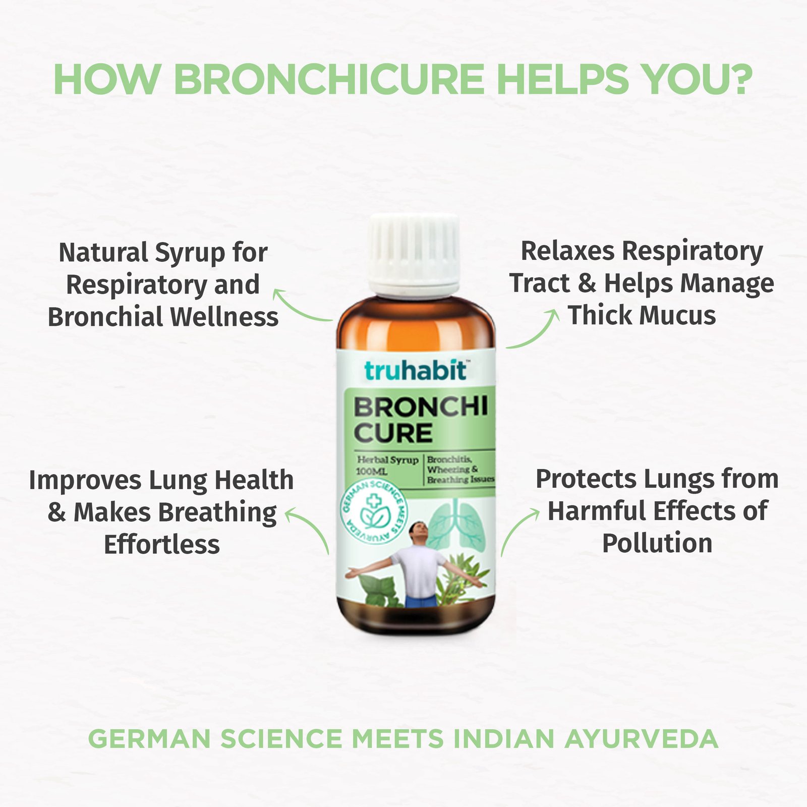 Bronchicure – Immunity booster for Asthma & Bronchitis patients, Helps in breathlessness due to pollution and allergy & cleans respiratory tract. It is a herbal syrup for respiratory wellness.