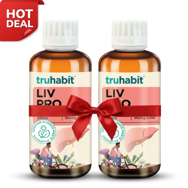 Truhabit Livpro syrup works by enhancing the liver’s detoxification process, promoting the regeneration of liver cells, and protecting the liver from damage caused by toxins and free radicals. It also helps improve digestion and appetite.